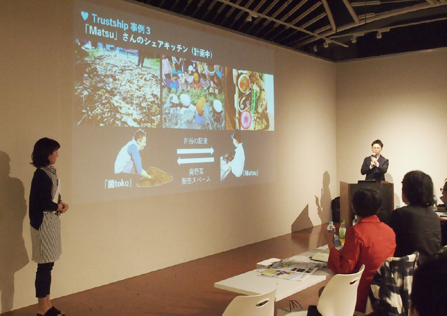 4人目の登壇者であるジョン・ムーア氏は、便利さを追求し、人間のためだけに作られた社会に対し疑問を呈した。地域によって食文化や食材の味覚が違うのは、そこで育まれた種や土壌、微生物など、見えない生き物たちの営みがあることを表している。人間だけではなく、地域の生態系を含めてすべての生命を育むことが本当のコミュニティーであると説く。そのためにも、非集中型のローカル・エコノミー・ネットワーク型経済を作り、地域での循環型ライフスタイルを目指すべきであると主張した。
