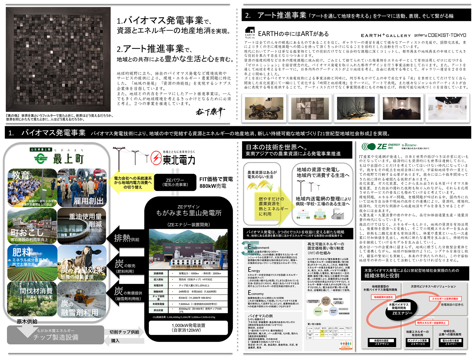 山形県の山間部にあたる最上町にて、バイオマス発電によりエネルギーの地産地消を実現し、アートを軸に心を豊かにするという両軸で地域活性を図る好事例です。本AWARDの主旨である特定の空間でのコミュニティに完全に一致しているわけではないですが、志や実行力はかなりレベルが高く、応援したい案件の一つということで佳作に選出されました。