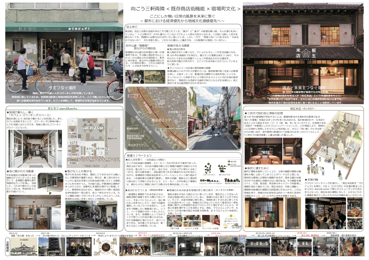 今回の「LOCUL REPUBLIC AWARD」で最優秀賞を勝ち取った「向こう三軒両隣〈既存商店街機能×宿場町文化〉」の提案は正にそのような提案でした。