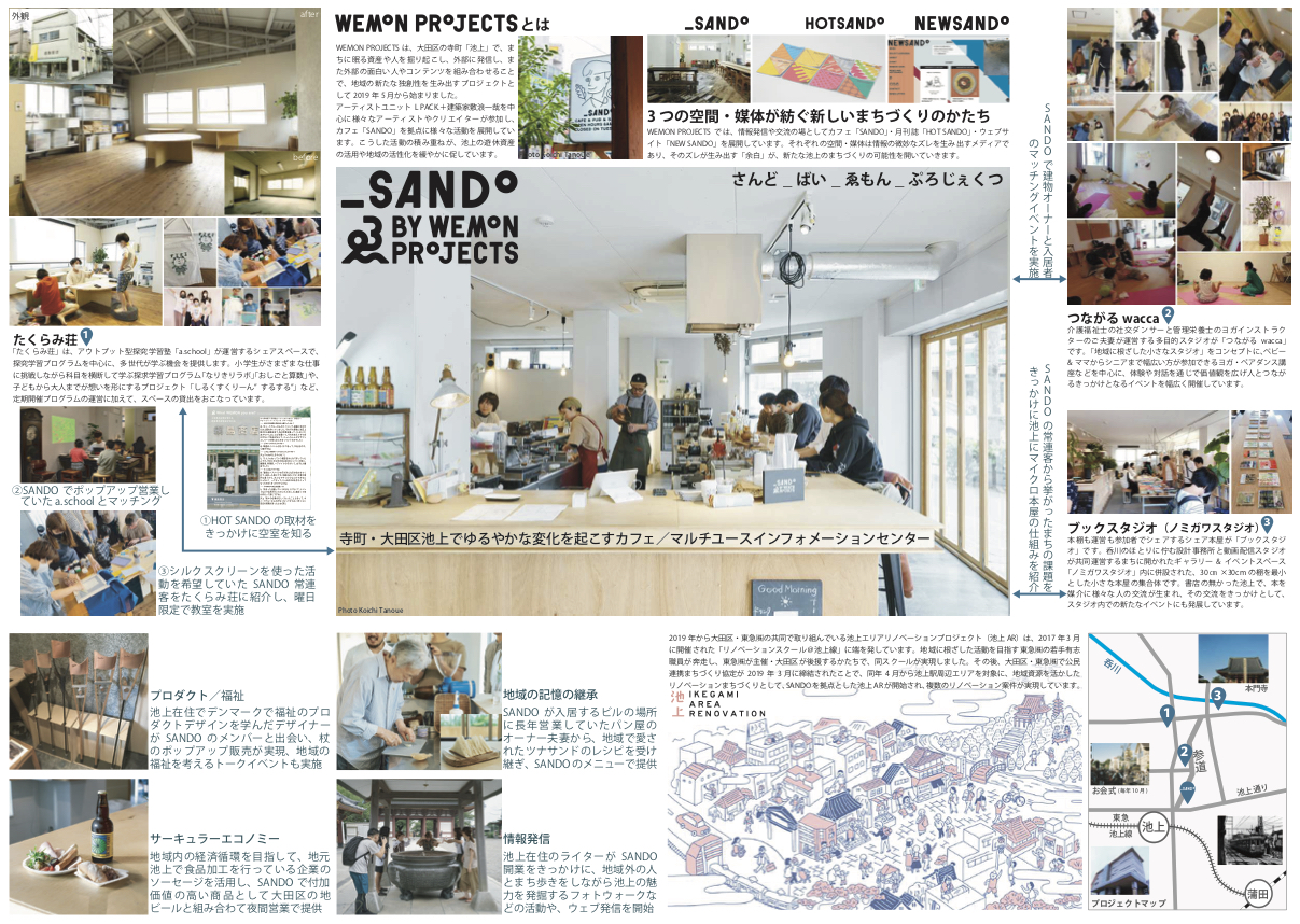 東京都大田区の池上本門寺の参道である池上エリアに、まちづくり拠点としてカフェ兼マルチユースインフォメーションセンターを2019年にオープン。大きなコの字型カウンターを中心としたこの場所は、近隣商店街とも提携しながらじっくりと街への浸透を目指している。まだまだ小さな取り組みながら、大田区と東急の公民連携まちづくり協定に基づく実践活動であり、大企業が草の根的なまちづくりへと関わっていくモデルとして今後の展開が期待された。