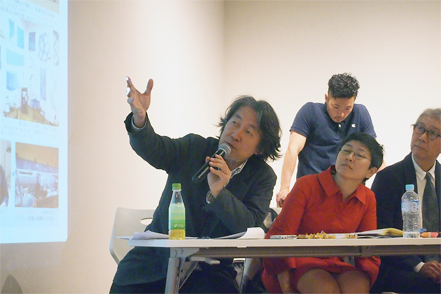 次に登壇した北山恒氏は、日本と世界の人口動態について解説を行った。人口が急増した産業革命以降、都市化・超資本主義化により「個人・共同体・自然」の関係が分離している問題を指摘した。その「個人・共同体・自然」を再び結びつけることが、「LOCAL REPUBLIC」の理念であると述べた。また北山氏は、自身が関わる木造密集市街地の安全性・居住性を改善する研究や、門前仲町に設計した「HYPER MIX」を「LOCAL REPUBLIC」の実践例として紹介した。